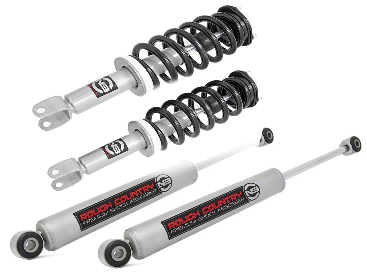 Smooth Ride Quality and Performance. Experience superior ride quality on and off the road with this Rough Country Suspension N3 Loaded Leveling Front Struts and Premium N3 Rear Shocks Combo Kit. Intended for vehicles with a 2-inch suspension lift, this Kit includes (2) N3 Loaded Leveling Front Struts and (2) Premium N3 Rear Shocks.