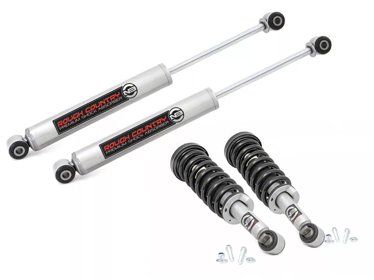 Smooth Ride Quality and Performance. Experience superior ride quality on and off the road with this Rough Country Suspension N3 Loaded Leveling Front Struts and Premium N3 Rear Shocks Combo Kit. Intended for vehicles with a stock ride height, this Kit includes (2) N3 Loaded Leveling Front Struts and (2) Premium N3 Rear Shocks.