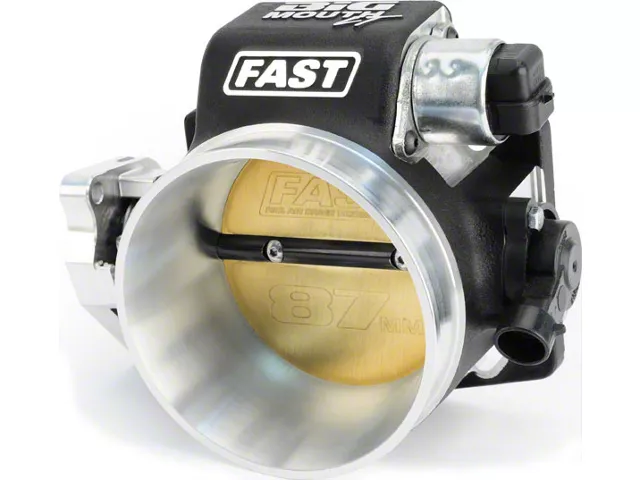 Performance. Big Mouth LT Throttle Bodies™ from FAST™ for Ford Coyote applications feature a black-wrinkle powder coating. The enlarged bore is a substantial upgrade over stock and allows increased airflow to support higher horsepower. A progressive throttle pulley enhances drivability, especially at low throttle, while a double return spring provides a solid feel and increased safety. A drive-by-cable throttle body (FAST™ Big Mouth/Big Mouth LT) is necessary for XFI™ and EZ-EFI® (or other aftermarket EFI customers) running an engine that was originally throttle-by-wire. Requires GM-style IAC and TPS and is also available with them - Part #54087.