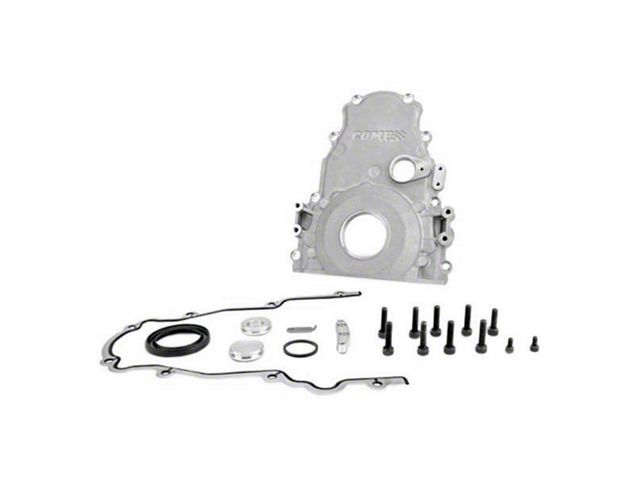 Description. COMP Cams LS Timing Cover part # 5496 fits all GM LS Based blocks, OEM and aftermarket, including the RHS LS Race Block. The cover has a unique design that allows it to work with both front and rear cam sensor LS engines. It however will not work with the LS7s unique oil pump and chain tensioner setup (Part # 5497 will).