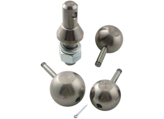 1-Inch Shank Interchangeable Hitch Ball Set; 1-7/8 to 2-5/16-Inch; Nickel-Plated Steel