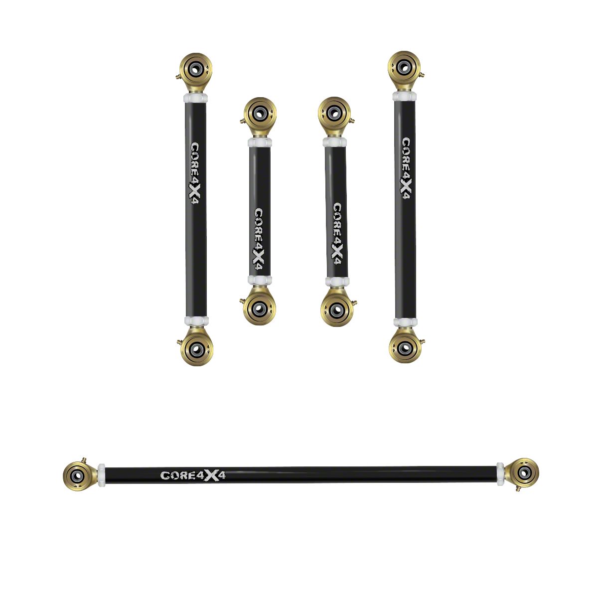Stability and Handling. Boost your vehicle's performance with the Core 4x4 Track Series Adjustable Rear Upper and Lower Control Arm and Track Bar Kit. This 5-piece set is designed for the rear placement, providing an adjustable solution for superior stability and enhanced handling on any terrain. Whether you're racing on the track or navigating rugged off-road landscapes, this kit offers exceptional adaptability.