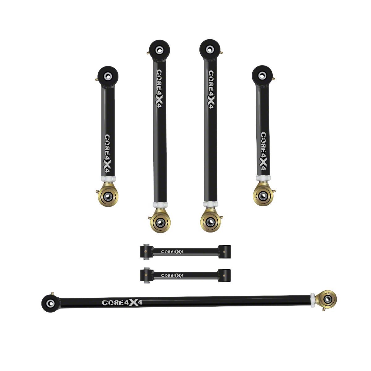 Superior Performance and Customization. Transform your off-road experience with the Core 4x4 Trail Series Adjustable Rear Upper and Lower Control Arm, Panhard/Track Bar, and End Link Kit. This comprehensive kit is designed to dramatically improve your vehicle's stability and suspension articulation, essential for navigating challenging terrains. The adjustable nature of the components allows for customizable alignment settings, catering to your specific driving needs and preferences. Whether you're tackling rocky paths, muddy trails, or steep inclines, this kit ensures your vehicle is equipped to handle a diverse range of off-road conditions with improved precision and control.