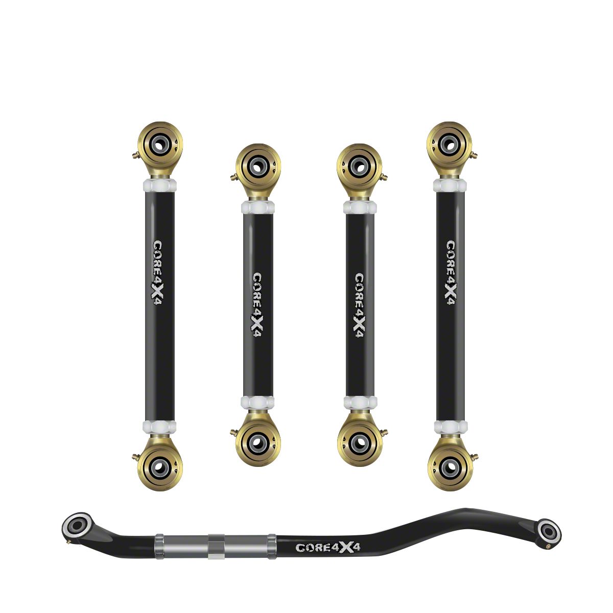 Our Tow Series Front Upper and Lower Control Arms and Adjustable Track Bar offer optimal adjustability for precise alignment correction and superior vehicle handling. Featuring left and right hand threads this kit allows for easy adjustment without removing anything from the vehicle. All parts are expertly engineered to accommodate lifts from 0 to 6 inches, allowing flexibility for future lift modifications. These components ensure complete control over your axle re-centering and caster adjustment, optimizing your vehicle's suspension for peak performance on any terrain. For lifts beyond 6 inches, please consult with us for additional options.