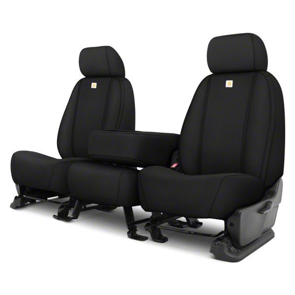 High-Quality Structure. The Covercraft Carhartt Super Dux SeatSaver Custom Front Row Seat Covers are durable and high-quality seat covers designed to protect your car's front seats from wear and tear. Made from Cordura Nylon Fabric, these seat covers are tough and abrasion-resistant, making them perfect for protecting your seats from spills, stains, and scratches. They are also designed with overlapped triple-stitched main seams, providing extra strength and durability to withstand the toughest conditions. The black powder-coated finish gives them a sleek and modern look that complements any car interior.