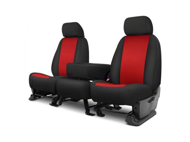First-Rate Structure. The Covercraft Precision Fit Seat Covers Endura Custom Front Row Seat Covers are expertly crafted from durable canvas nylon polyester fabric, ensuring long-lasting quality and protection for your vehicle's seats. The red/black design adds a stylish touch to your interior while providing a custom fit that enhances the overall appearance. These seat covers are not only visually appealing but also functional, featuring a waterproof and spillproof construction that helps guard against accidental spills, stains, and liquid damage. The foam backing adds an extra layer of comfort, providing a pleasant seating experience for both driver and passengers.
