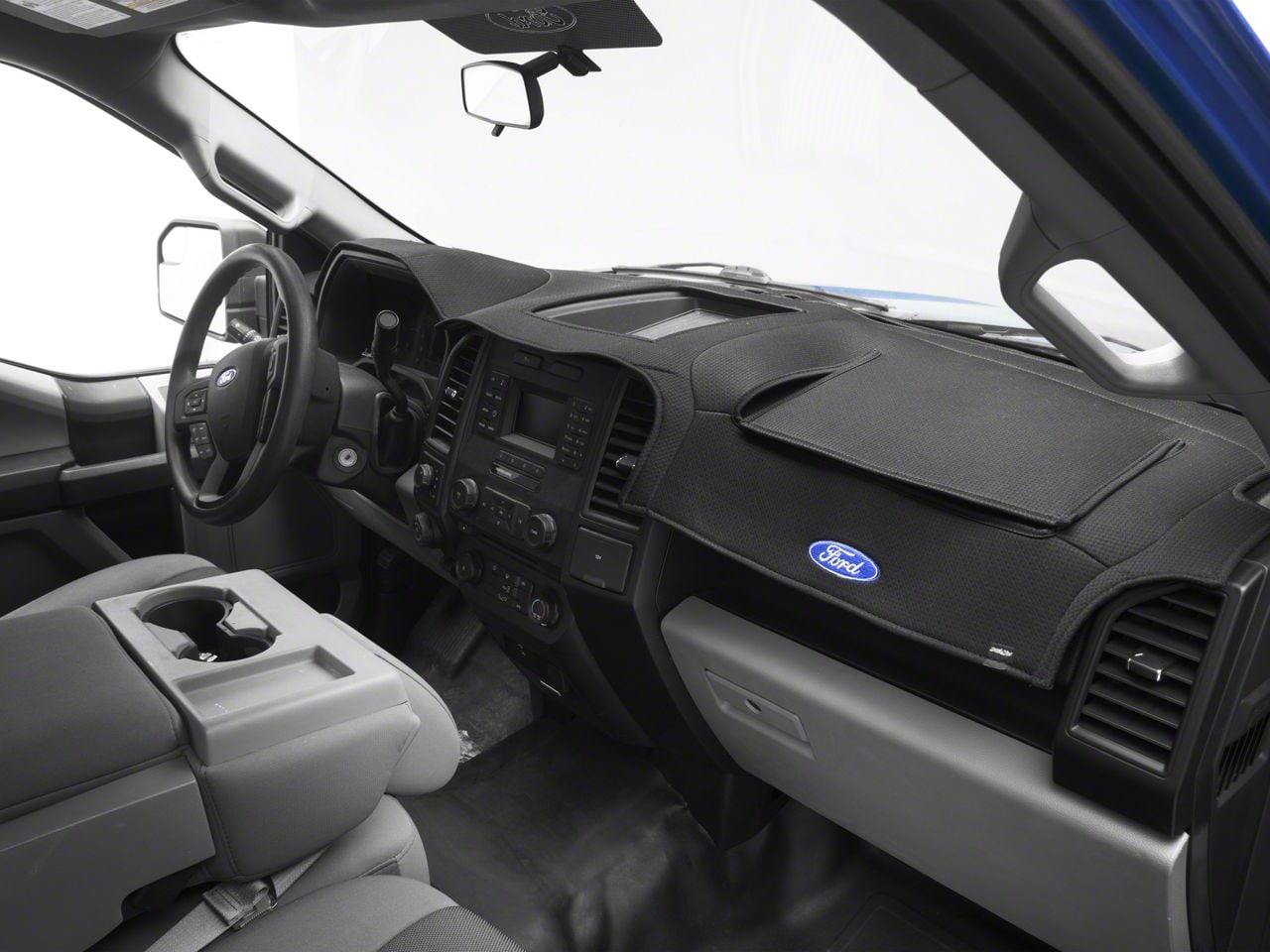 Ford Enthusiast. You love your Ford F-150 so show it, even in the small places. This Covercraft Ltd Edition Custom Dash Cover with Ford Blue Oval Logo; Black is a wonderful addition to your truck, letting everyone know where your love and loyalty lies.