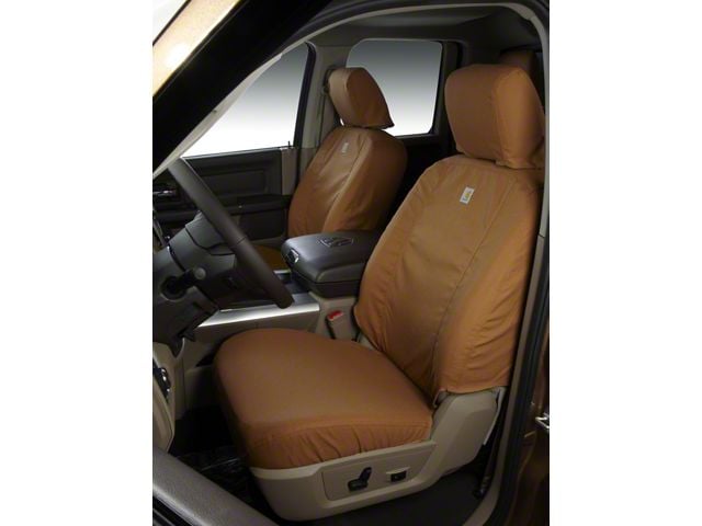Application. These Covercraft SeatSaver Front Seat Covers in Carhartt Brown fit all 2009-2014 Ford F-150 models with Bucket Seats