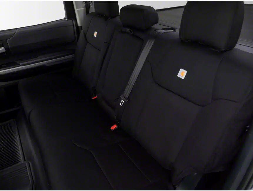 Rugged Protection and Style. The Covercraft Carhartt Super Dux Seat Cover offers heavy-duty protection and rugged styling for your Ford F-250’s second row. This matte black seat cover provides a custom PrecisionFit that perfectly protects against spills, stains, and daily wear.