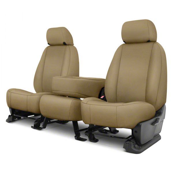 Comfort and Style. The Covercraft Precision Fit Seat Covers Endura Custom Front Row Seat Covers in Tan offer a perfect fit for your Ford F-250 Super Duty, ensuring maximum protection and style. Designed with full-seat custom-fit technology, these seat covers seamlessly cover the entire front row, including the seats, headrests, and armrests. Furthermore, they are waterproof and spillproof, effectively safeguarding your seats from any accidental spills or stains.