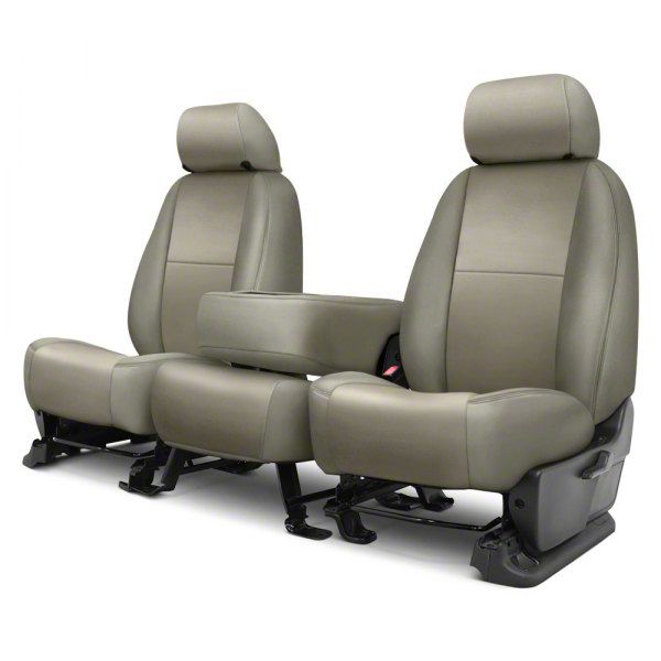 Elevating Interior Aesthetics. The light gray leatherette of the Covercraft Precision Fit Seat Covers Leatherette Custom Front Row Seat Covers significantly enhances the interior appearance of your vehicle. This sophisticated material introduces a touch of elegance and style, instantly upgrading the overall aesthetic and contributing to a clean, harmonious look within the cabin.