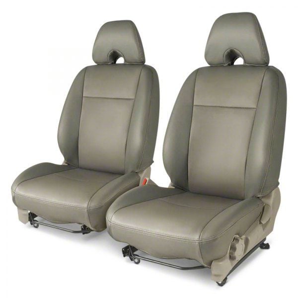 Refined Interior Upgrade. The Covercraft Precision Fit Leatherette Seat Covers offer a luxurious way to shield your truck’s front row interior. Designed for the 2017-2022 Ford F-250 Super Duty with bucket seats, this set helps preserve the original upholstery and carpeting while adding a clean, upscale look with a light gray leather-like finish.