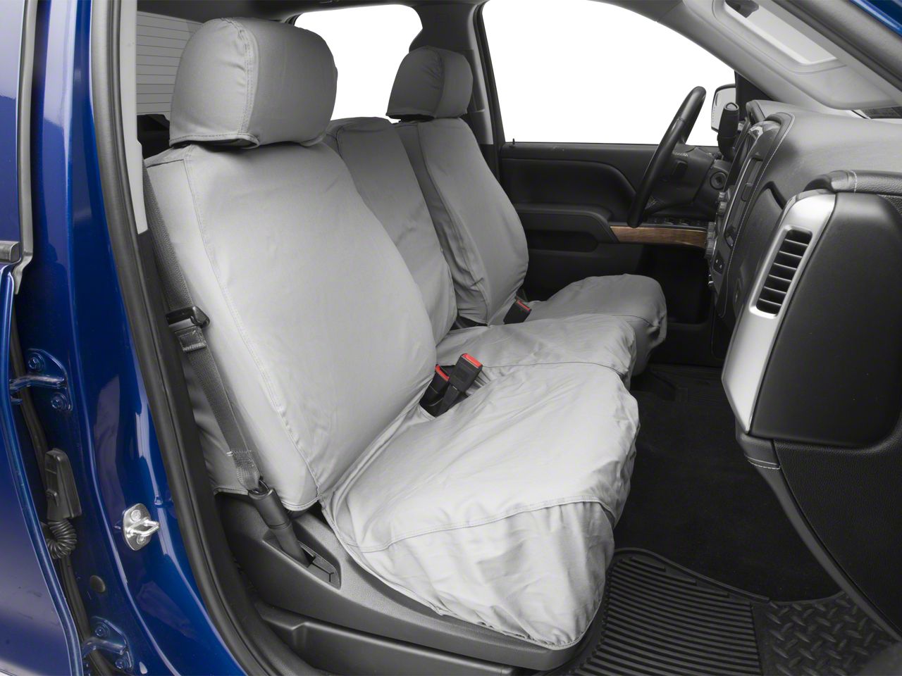 Easy and Affordable Protection. Give your Silverado's front seat the protection it needs with this seat cover from Covercraft in stylish gray. Few parts of your truck get used as often or as hard as its front seat. That seat gets used every time you sit in your truck, and through every mile you drive. This heavyweight cotton-poly blend cover will protect your expensive-to-replace stock upholstery against wear and tear. Covercraft helps you preserve your resale value in a stylish and affordable way.