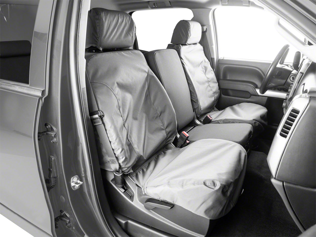 Application. These Covercraft Front Row SeatSaver Seat Covers - Waterproof Grey are designed to fit on all 2007 to 2018 Chevy Silverado 1500's.