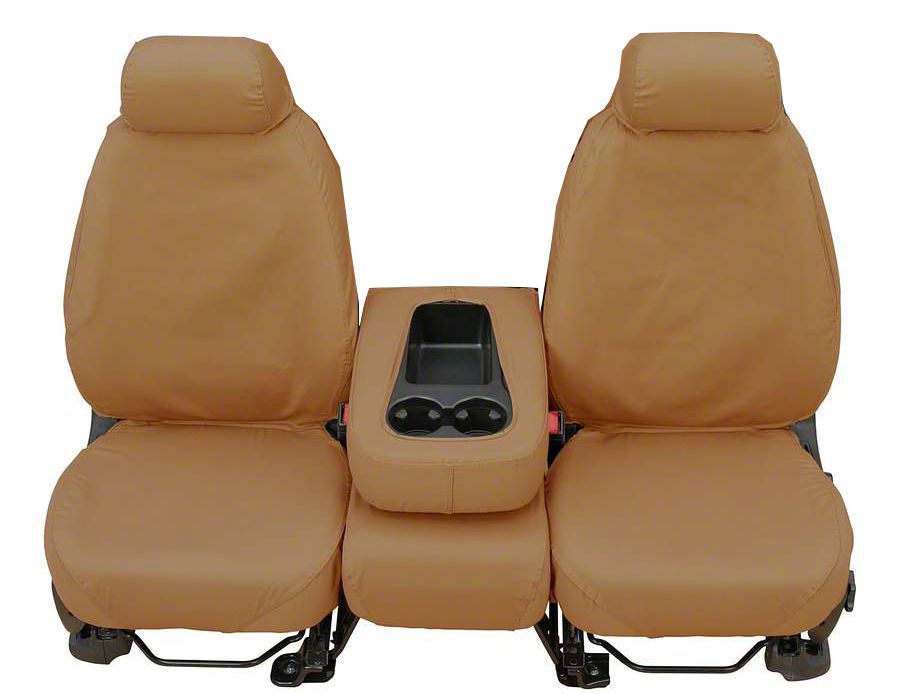 Optimized for Chevy’s 40/20/40 Split Bench. The Covercraft Work Truck SeatSaver Custom Seat Covers are designed especially to provide attractive, durable, long-lasting protection and the full functionality of your Silverado’s 40/20/40 split front bench seat. The rich tan polycotton covers provide comfortable, stylish protection for the seats, headrests, and fold-down center console. They even come with built-in storage pockets on the backs.