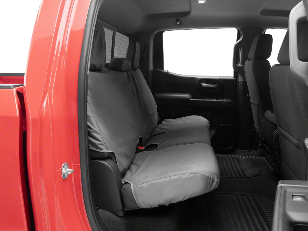 Application. This Covercraft SeatSaver Second Row Seat Cover in Waterproof Gray fits all 2020-2026 Sierra 3500 HD Double Cab and Crew Cab Models with 60/40 Split Cushion Bench Seat and w/o Fold-Down Armrest.