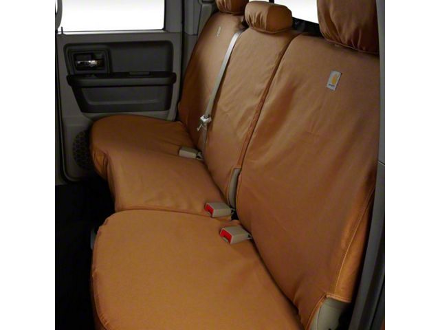 Description. Don't let the good looks fool you. These seat covers are tough as nails with heavy-duty, firm-hand CarharttĀ® Duck Weave fabric and triple stitched main seams. Custom patterned for a perfect fit. Our CarharttĀ® Traditional Fit SeatSavers are designed for heavy-duty protection for work, hunting, fishing, pets, and anything else you throw at them. Not only is the fabric super durable, but it is highly water-resistant to bead away any moisture, spills, or drool from your pups.
