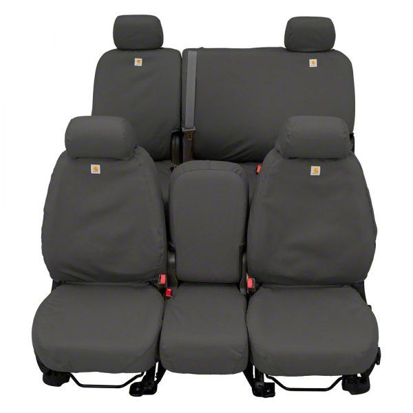 Hard-Wearing but Breathable. Looking for a seat cover that can stand up to the rugged demands of your workweek? Look no further than the Covercraft SeatSaver Custom Second Row Seat Cover in Carhartt Gravel. This tough, hard-wearing seat cover is made from breathable Carhartt duck-weave fabric and features triple-stitched main seams for added strength and durability.