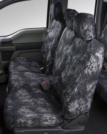 Protects Factory Seats in Style. Enhance your factory seats’ style and protection by installing these Covercraft SeatSaver Blackout Camo Front Seat Covers. Featuring a blackout camo print, you can now safeguard your factory seats against dirt and spills with superb aesthetics. Compared to seat covers with plain prints, these front seat covers provide your truck’s interior a more unique and aggressive look.