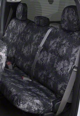 Style and Protection. For exceptional style and seat protection, install this Covercraft SeatSaver Blackout Camo Second Row Seat Cover. This seat cover sports a blackout camo print that elevates your interior’s style. What’s more, this seat cover does a great job of protecting your factory seats from dirt, spills, and grime.