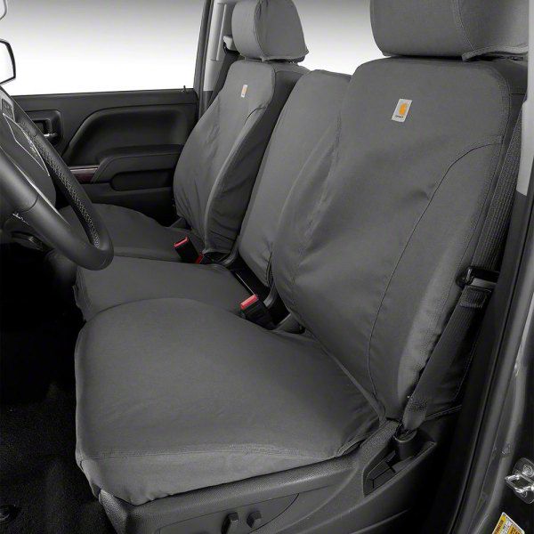 Superior Protection and Durability. Shield your 2020-2026 Chevrolet Silverado 2500 HD's front seats with the Covercraft SeatSaver Custom Front Seat Covers in Carhartt Gravel. These custom-fit seat covers are made from durable Carhartt fabric, providing exceptional protection against spills, stains, and everyday wear and tear. The water-resistant material ensures your seats remain dry and clean, while the tough Carhartt construction guarantees long-lasting durability, making these seat covers ideal for work trucks and family vehicles alike.