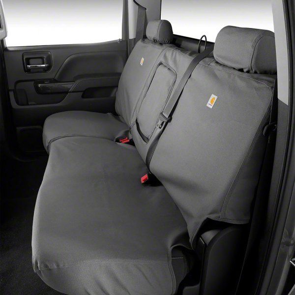Reliable Protection. Upgrade your Silverado with the Covercraft SeatSaver Custom Second Row Seat Cover; Carhartt Gravel and experience the perfect blend of style, protection, and durability. The SeatSaver seat covers feature the iconic Carhartt Gravel color, adding a classic touch of style to your vehicle's interior. This timeless color not only enhances the look of your ride but also effortlessly complements the existing color scheme.