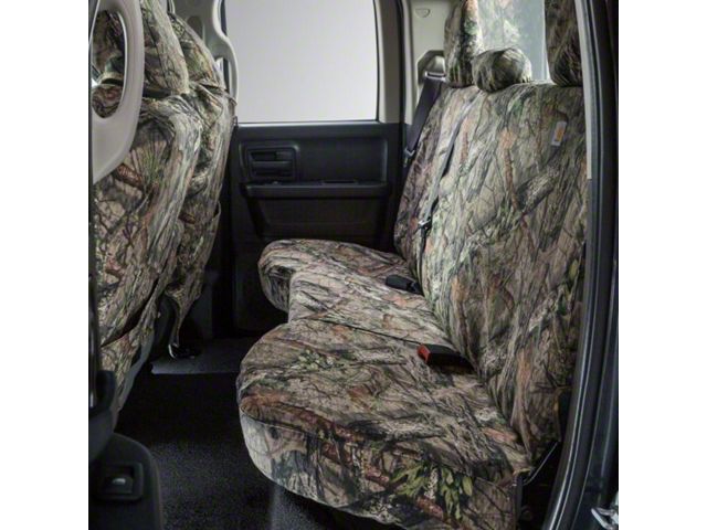 Description. Our Mossy Oak® Seat Covers are the perfect blend of rugged Carhartt® Duck Weave Fabric paired with the worlds most recognized camo in Mossy Oak® Break Up Country™. If you love the outdoors this is the Seat Cover for you. Made highly water-resistant with Rain Defender® durable water repellent to protect your seats from accidental spills or soggy clothes from hunting outdoors.