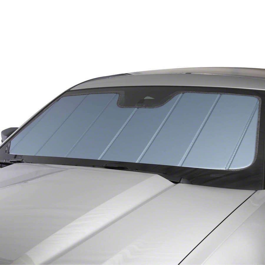 Ultimate Sun Protection. The Custom Sunscreen; Blue Metallic is designed to keep your vehicle’s interior cool and shielded from damaging UV rays. It is custom-made to fit the exact dimensions of the windshield, providing maximum coverage and sun defense to prevent interior fading and heat buildup during hot weather.