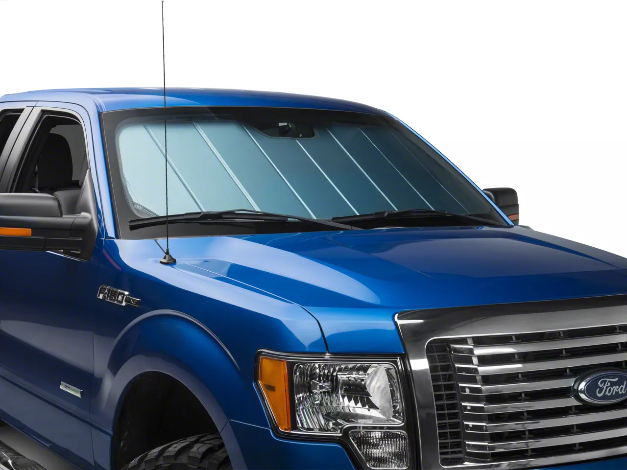Application. This blue Covercraft UVS100 Custom Sunscreen is designed to fit all 2009-2014 Ford F-150 models.