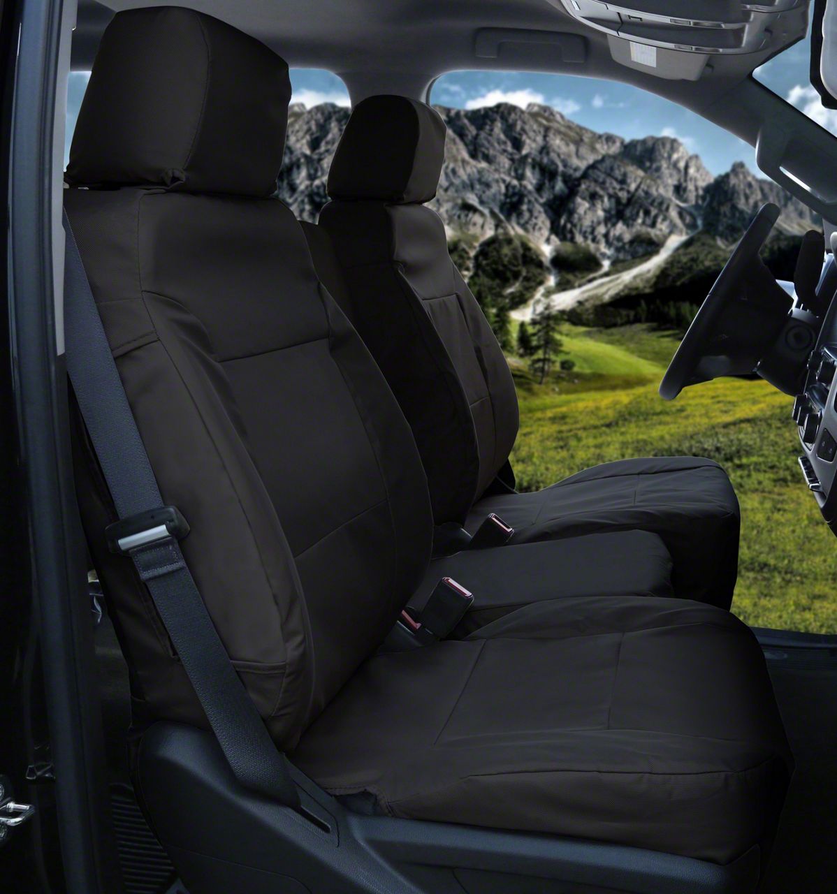 Ruggedly Stylish Seat Covers. Protect your F-150’s rear seats in style with the Coverking Cordura Ballistic Custom-Fit Black Rear Seat Covers. These rear seat covers feature a ballistic fabric construction, giving them a more substantial feel. This robust feel isn’t just superficial though as these seat covers are highly resistant to tears and abrasion as well as moisture. Similarly, these covers are designed to fit your rear seats like a glove that looks like they were custom-tailored. More importantly, these seat covers retain all the functions of your rear seats, including the seat belts and side airbags.