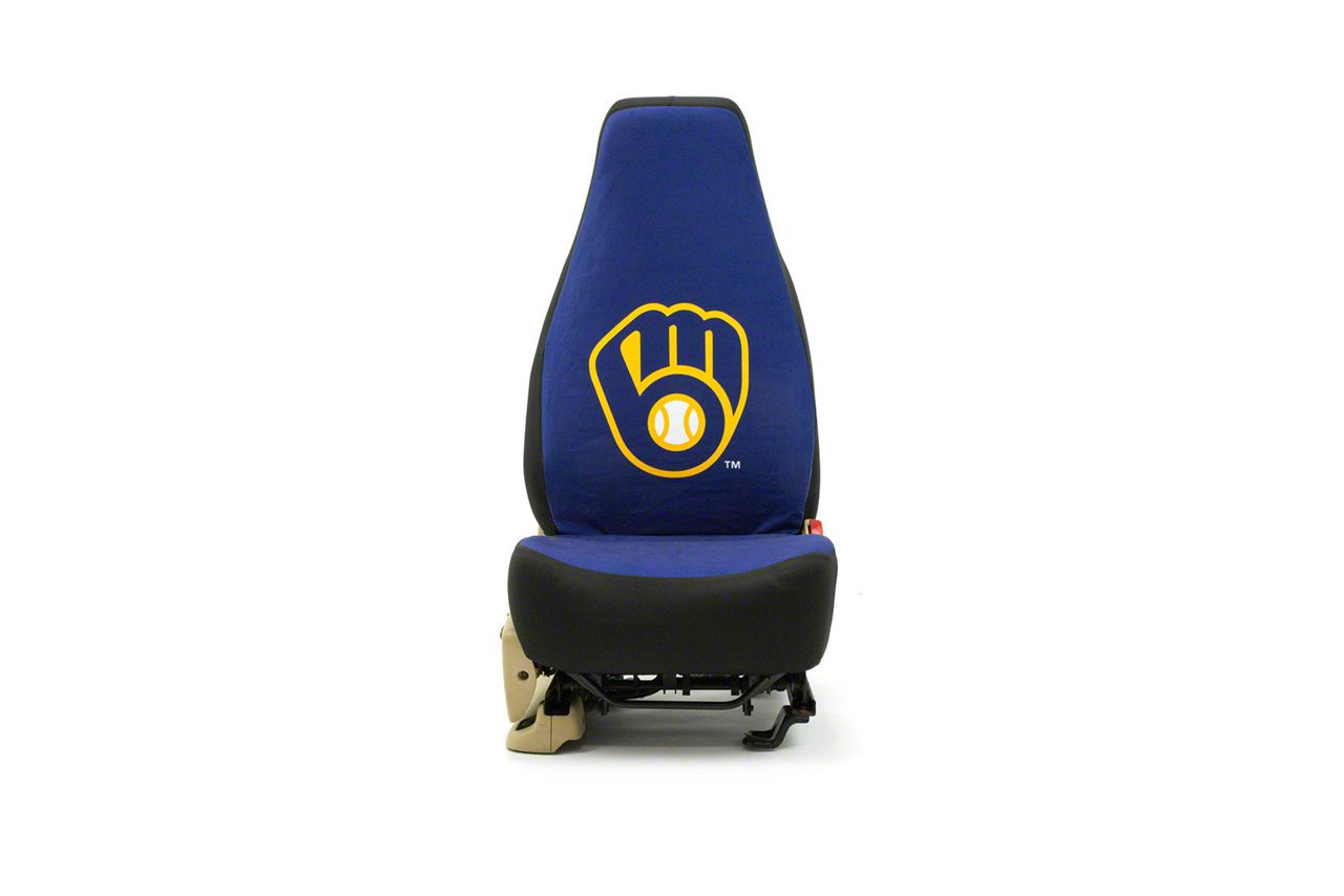 Coverking Universal Ultisuede Seat Cover with Milwaukee Brewers Logo (Universal; Some Adaptation May Be Required)