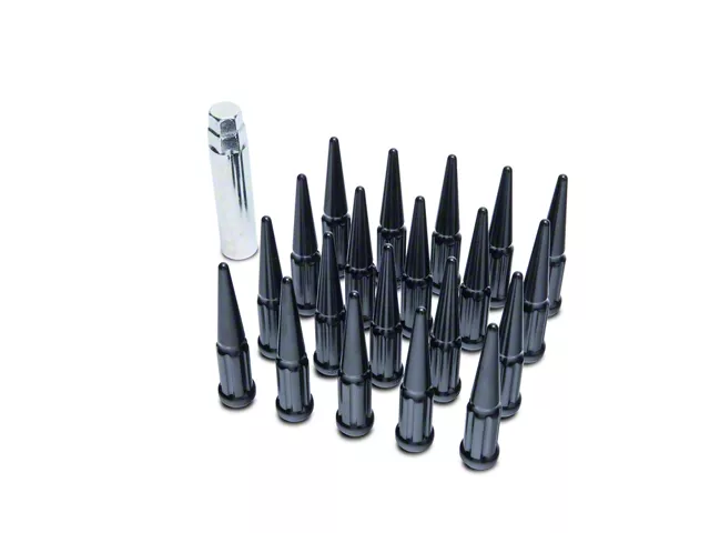 Built to Perform. Engineered specifically to handle heavy-duty, high performance wheels, this kit is made from a durable, 1045 carbon steel. Showcasing a dual coat, black finish, these spike lug nuts are resilient to rust and corrosion. Engineered to set your truck apart everywhere you go, the Coyote Black Spike Lug Nut Kit is built to perform.