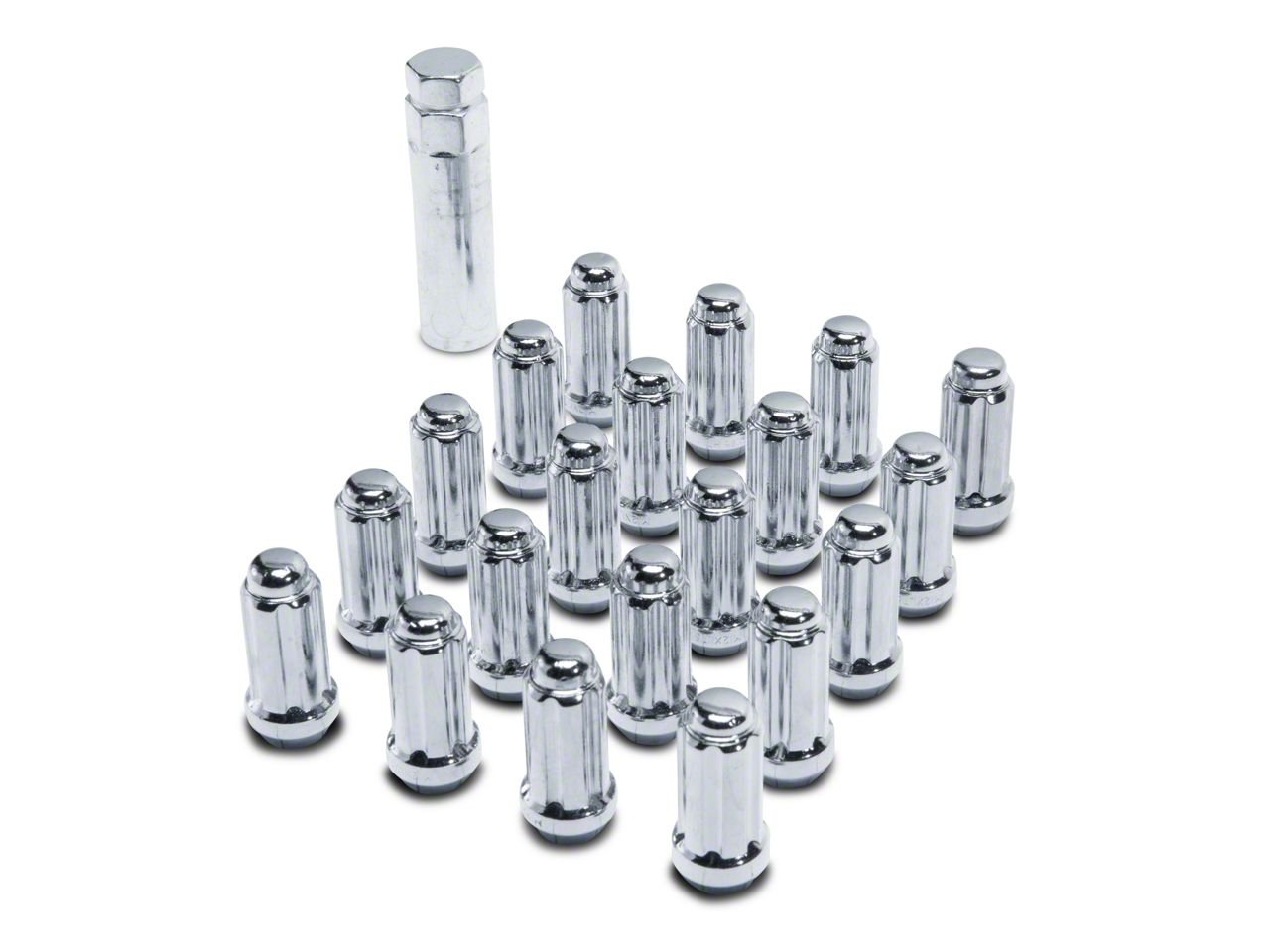 Built to Impress. The Coyote Chrome 6-Spline Lug Nut Kit - 12mm x 1.75 is a high-impact, quality spike lug nut kit that delivers an aggressive, head-turning style. Custom made with a 12 mm x 1.75 inch design, this 6 spline look offers incredible attitude with sustaining flair. Ideal for big, heavy-duty wheels, this kit is sure to set your Ford apart in a crowd.