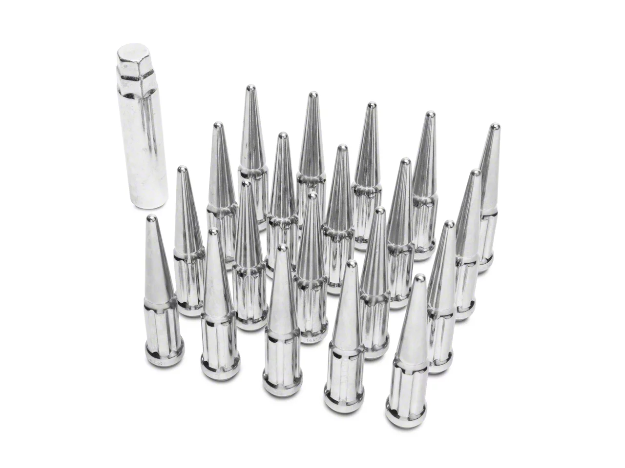 Form Meets Function. Thanks to Coyote's Chrome Spike Lug Nut Kit 14mm x 2.0, you'll be able to enjoy an improvement in your 2000-2003 Ford F-150's performance as the lug nuts provide superior wheel security as well as optimize thread engagement for a steady, powerful drive you can rely on at all times. Not only do the lug nuts offer an improvement in function but form as well as they complement the hardcore style of your stock wheels or oversized rims. Featuring a heavy-duty, rugged look, the lug nuts add to your truck's naturally aggressive look to ensure it stands apart from the pack wherever you venture.