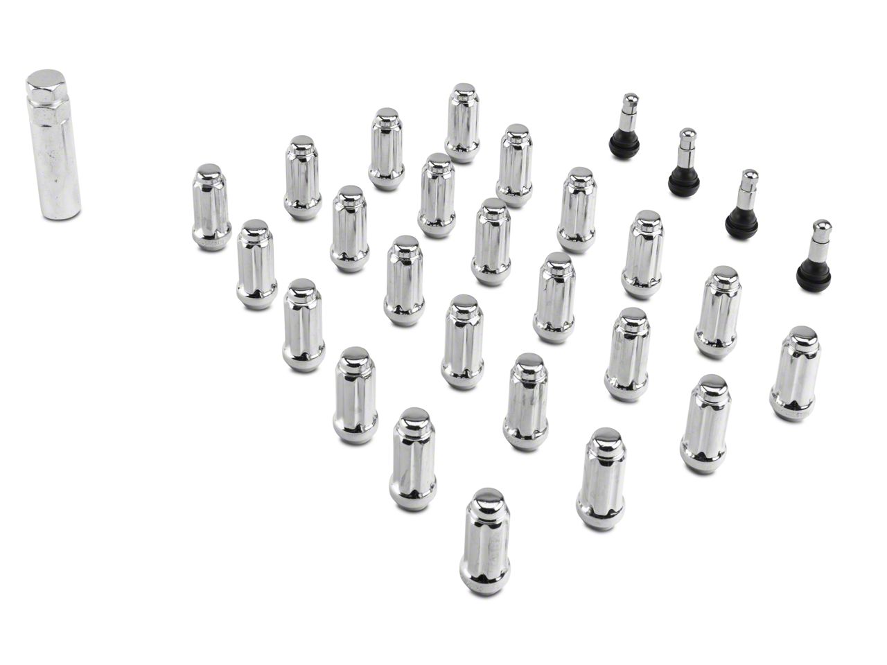 Enhances Overall Appearance. You can enhance your truck’s overall appearance with this Coyote Chrome 6 Spline Lug Nut Kit. This kit sports a sleek chrome finish that provides a stunning luster to your wheels, making it hard for everyone not to notice.