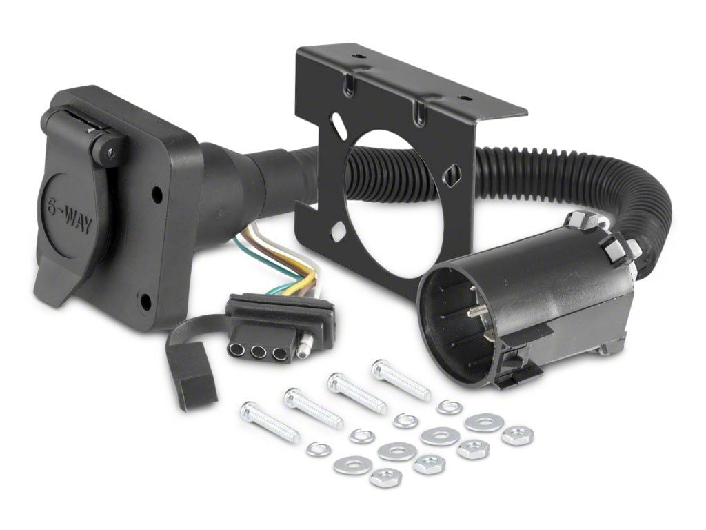 User-Friendly Plug and Play Design. With a plug-and-play design, there’s no more need for you to cut and splice any wires to provide power from your truck’s electrical systems to your trailer. This connector’s 4-way flat output instantly provides power to your trailer’s turn signals, brake lights, and tail lights. It also has a 6-way round socket for auxiliary power and electric brakes.