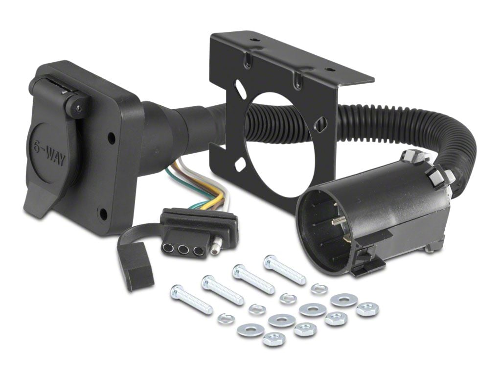 A Hassle-Free Way to Power Your Trailer. With the 4-Way and 6-Way Round Connector, you'll never have to spend a lot of time to bring electricity to your trailer. Simply plug this custom wiring connector to the OEM socket and you can now power most of your trailer's lights, plus its electric brakes and auxiliary power source. No cutting or splicing is required.