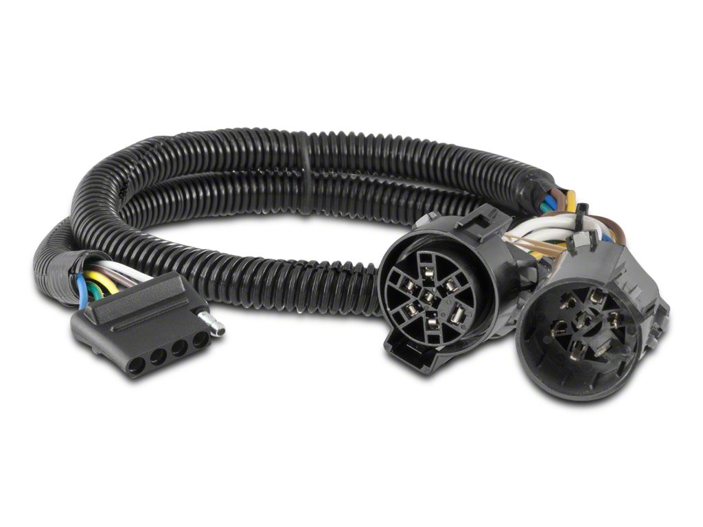 Take Your Show on the Road. makes it easy to get that trailer on the road and racking up miles behind your F-150 with the 7-Way to 5-Way Custom Wiring Harness. This wiring harness connects the Ford factory-stock 7-way trailer socket to a simple 5-way flat connector, while still allowing use of your 7-way when needed. It's a quick and secure way to get going on your next adventure.