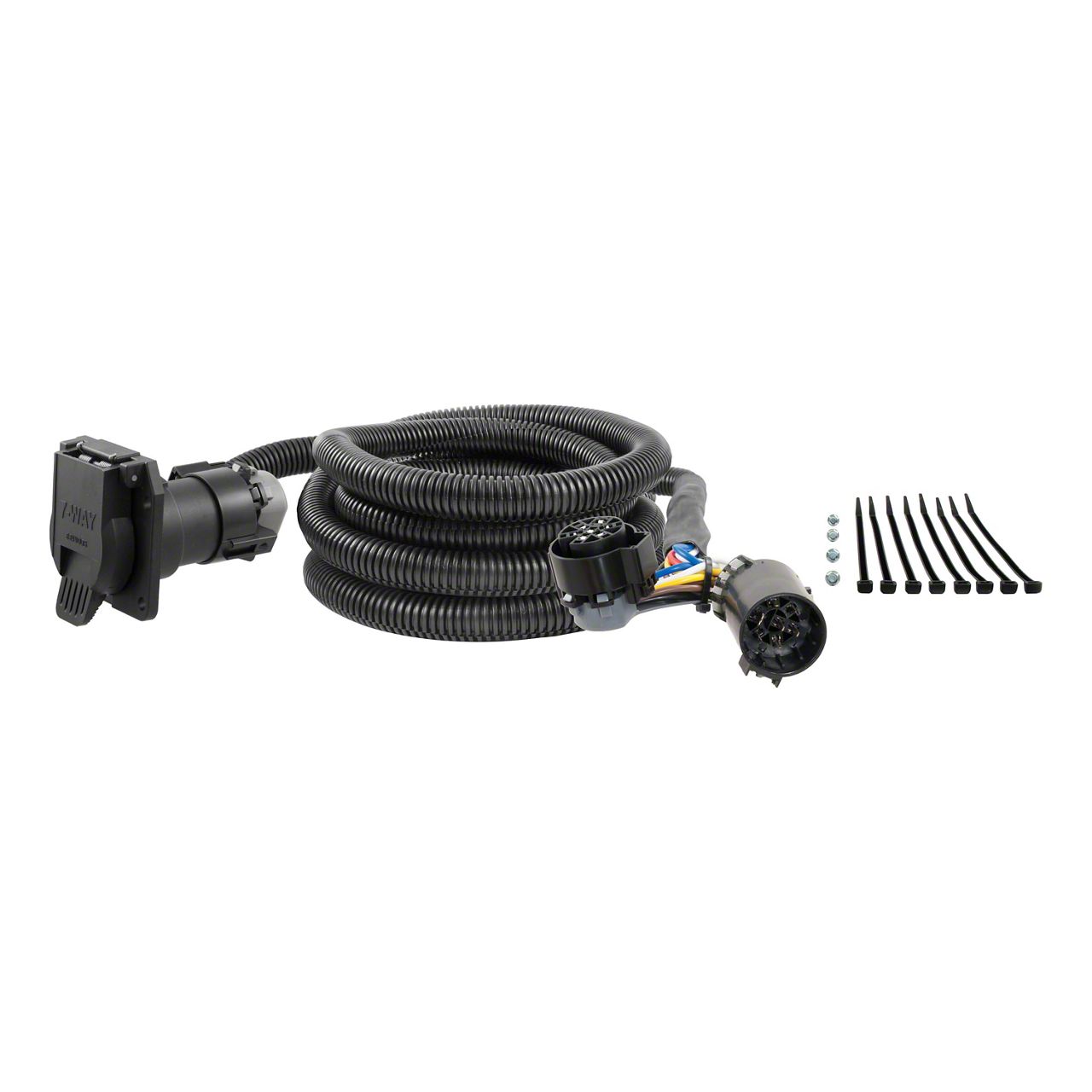 Cutting-Edge Design. The 10 Feet 5th Wheel/Gooseneck Hitch Wiring Harness with 7-Way Connector is manufactured to route the 7-way RV blade socket into the truck bed. This design allows this configuration while retaining the use of the rear socket as well.