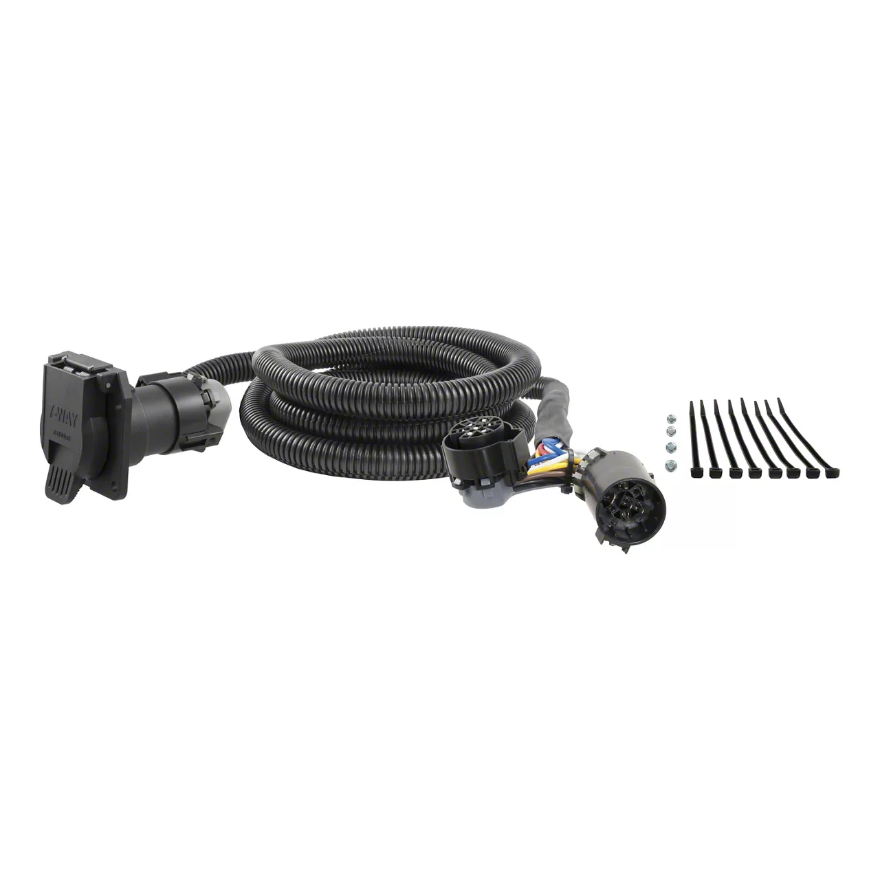 Robust Construction. Manufactured from the best of premium materials, this weather-resilient wiring harness routes the 7-way RV blade socket into the truck bed while still retaining use of the rear socket. Featuring a spring-loaded dust cover that keeps the connection clean when not in use, this hardy design is sure to stand up for miles and miles.