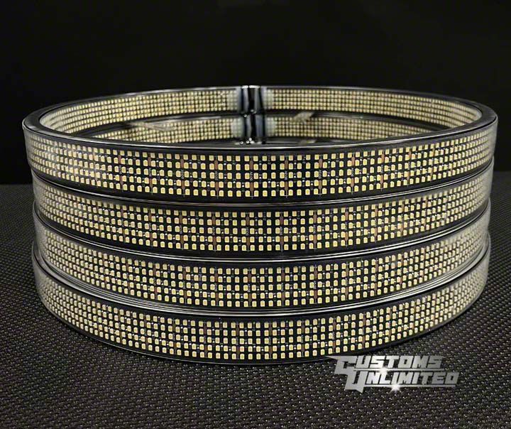 Bold and Bright Wheel Illumination. The Customs Unlimited Wheel Lights are designed to add an ultra-high-intensity glow to your vehicle’s wheels, creating a stunning visual effect. With 10 rows of LEDs per ring and an impressive 36,000-lumen output, these lights provide unmatched brightness for a head-turning look.