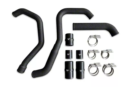 Wrinkle Black. The wrinkled black finish adds a touch of rugged elegance. Durable 2.50-inch aluminum is used for the hot-side piping, while the cold side boasts 3.50-inch to 3-inch aluminum piping. Paired with robust T-bolt clamps and 4-ply couplers, this kit guarantees secure connections.