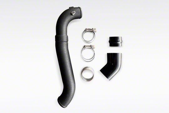 Sturdy Build Quality. This cold-side intercooler pipe is constructed from premium aluminum tubing for exceptional strength and corrosion resistance in a lightweight form. Furthermore, this intercooler pipe is CNC mandrel-bent and features a smooth 3.50 to 3-inch diameter transition for maximum airflow. Lastly, this intercooler piping is finished in a wrinkle black powder coating, giving it a sleek style and added corrosion protection.