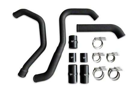 Construction and Appearance. Built from mandrel-bent aluminum tubing that transitions from 2 inches to 2.5 inches, this pipe is finished in a durable wrinkle black coating for a sleek look and added protection. A 1/8-inch NPT bung provides flexibility for water/meth injection or sensor installation, while the included heavy-duty T-bolt clamps and ultra-strong 4-ply couplers ensure a secure, leak-free connection.