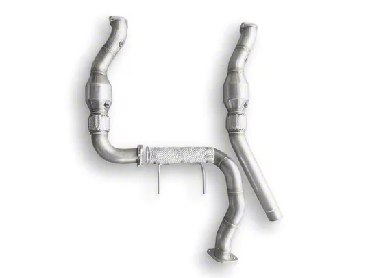Aggressive Performance Design. The CVF Stainless Steel Catted Down-Pipes with Built-In Turbo Adapters are designed to increase exhaust flow in your F-150, and reduce backpressure, resulting in improved horsepower, torque, and throttle response. These down-pipes feature built-in, high-flow catalytic converters that help reduce harmful emissions while maintaining optimal exhaust flow. This allows your Raptor to comply with emissions regulations without sacrificing performance.