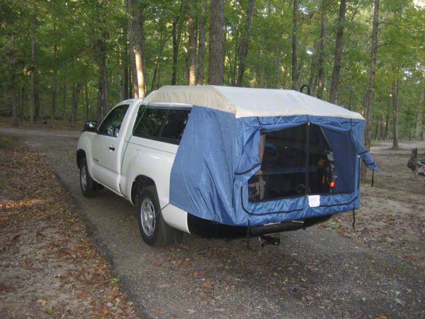 • Includes carrying bag. This tent is supported by your topper's rear window. There are no poles.