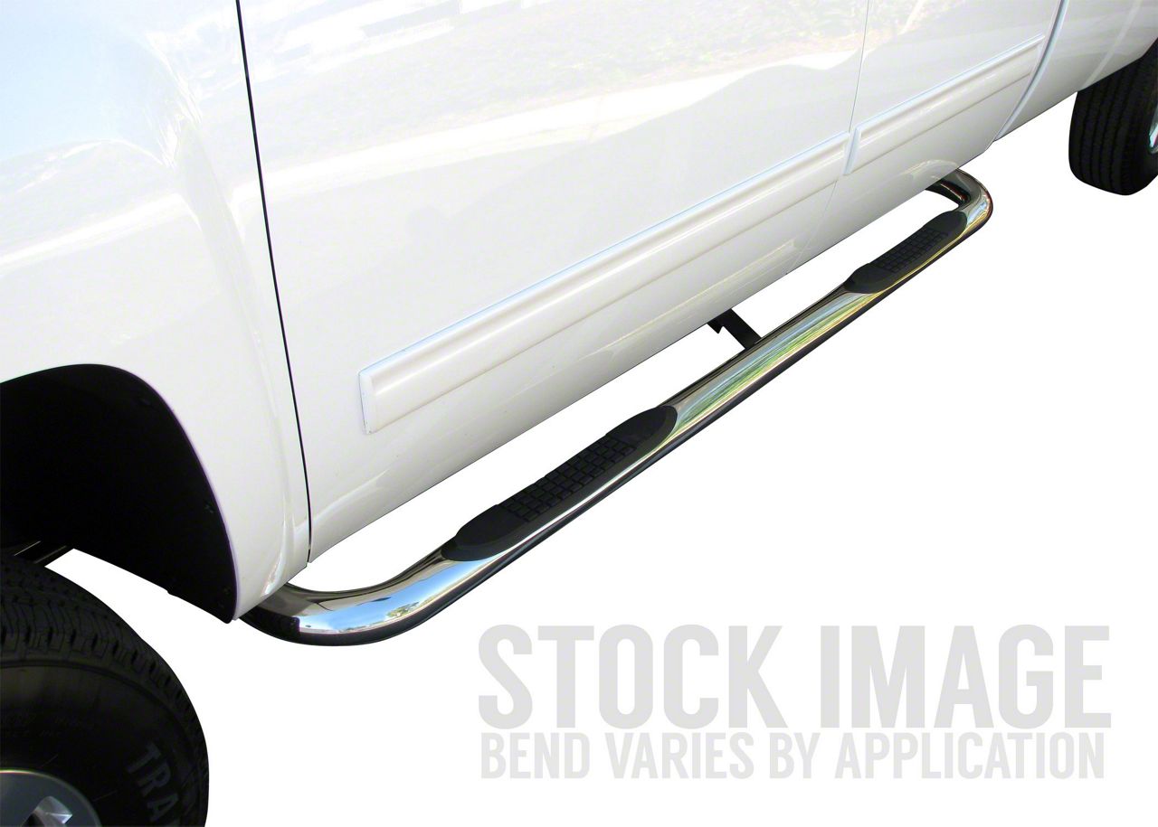 High-Quality Sidebars. The 3-Inch Round Side Step Bars made from polished T304 stainless steel provide a sturdy and stylish step solution for getting in and out of your vehicle. They enhance your truck's accessibility while adding a polished look that complements the vehicle’s design.
