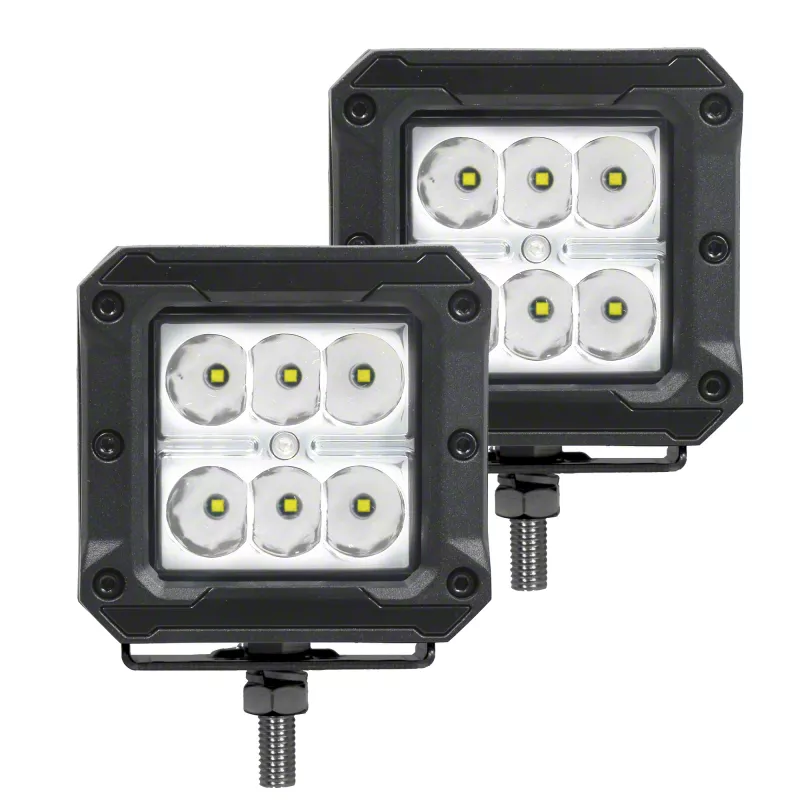 Go Rhino 3-Inch x 3-Inch Bright Series LED Light Pods; Spot Beam (Universal; Some Adaptation May Be Required)