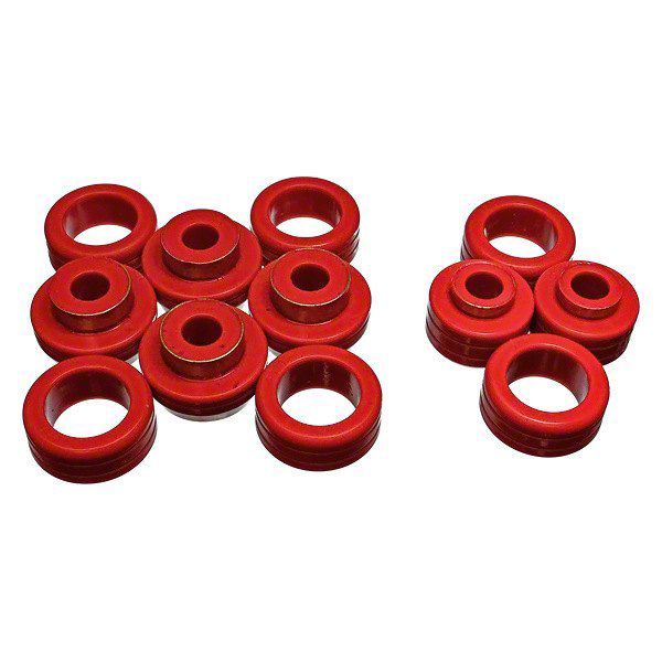 Will replace distorted and worn-out original rubber mounts to maintain car body and truck cab to bed alignment. Original rubber mounts are so soft they often crack, distort, and crush so badly they often fall off. And aluminum body mounts are too harsh for street use that they tend to break and cause other components to break.Energy's specially formulated Hyper-Flex(TM) polyurethane cab and body mounts combine the best qualities of both: they're soft enough for a smooth ride, yet rugged enough for the most demanding road or track.Most sets have a strong zinc plated steel ring molded into them - for added durability and when the application requires it.