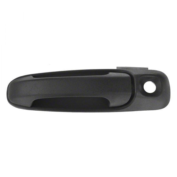 Solid Grip. This Exterior Door Handle is positioned for the front driver's side and is crafted with a textured black finish, blending seamlessly with any color scheme while offering a solid grip. Made from high-strength materials, it's designed to withstand daily use and harsh weather conditions.